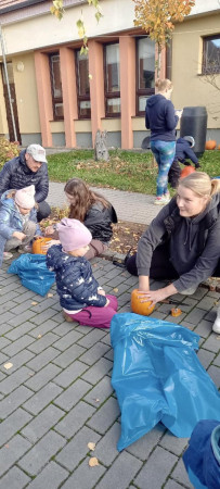 Fotogalerie: Úklid zahrady s vyřezáváním dýňových strašáčků a opékáním